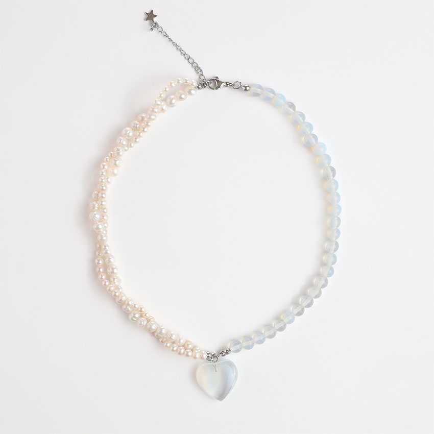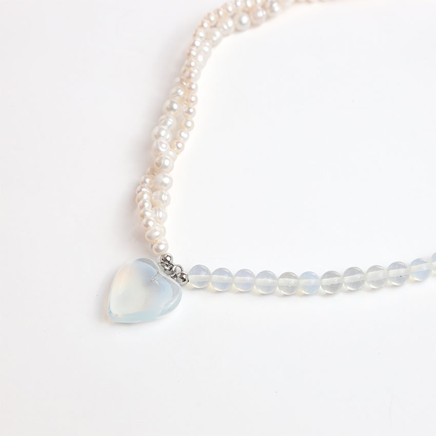 Transparent Moonstone, Quartz Heart & Freshwater Pearls